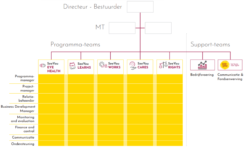 Managing the organisation’s costs remains an important goal so that as much of our income as possible is used in our porject countries. In previous years, absence due to illness and labour market shortages meant that SeeYou had to hire independent professionals. The number of independent professionals we hired could be reduced in the course of 2024. Despite rising salary costs in general, the rise of these costs remained limited at SeeYou because in consultation with the staff, we relinquished the link with te collective labour agreement with effect from 2024. Insted, we now weigh market and wage trends against the available resources.