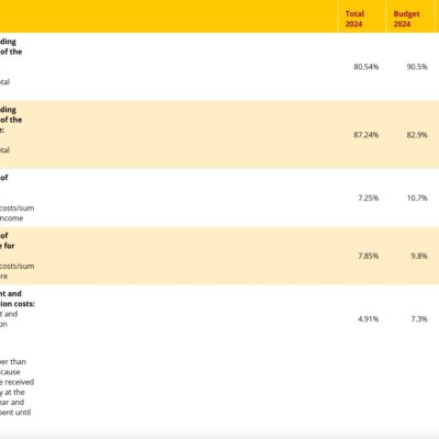 - The income from other non-for-profit organisations was 14% lower than budgeted. In particular the results of the segment Funds and Foundations fell and remained below the level of 2023 due to the loss of a project and the associated donor.